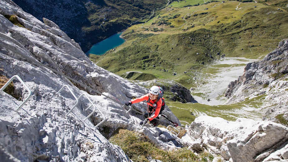 Zum Aufwärmen den Familien-Klettersteig Partnunblick begehen.