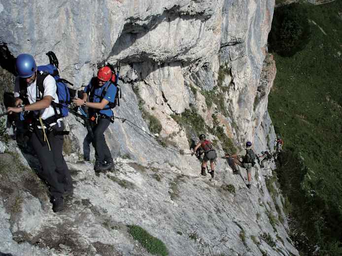 Ausrüstung: Klettersteigset, Helm, mittelfeste Bergschuhe