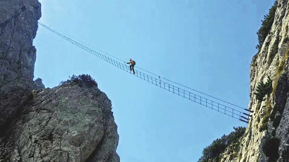 Luftig im Intersport Klettersteig Foto: Kurt Schall, www.schall-verlag.at