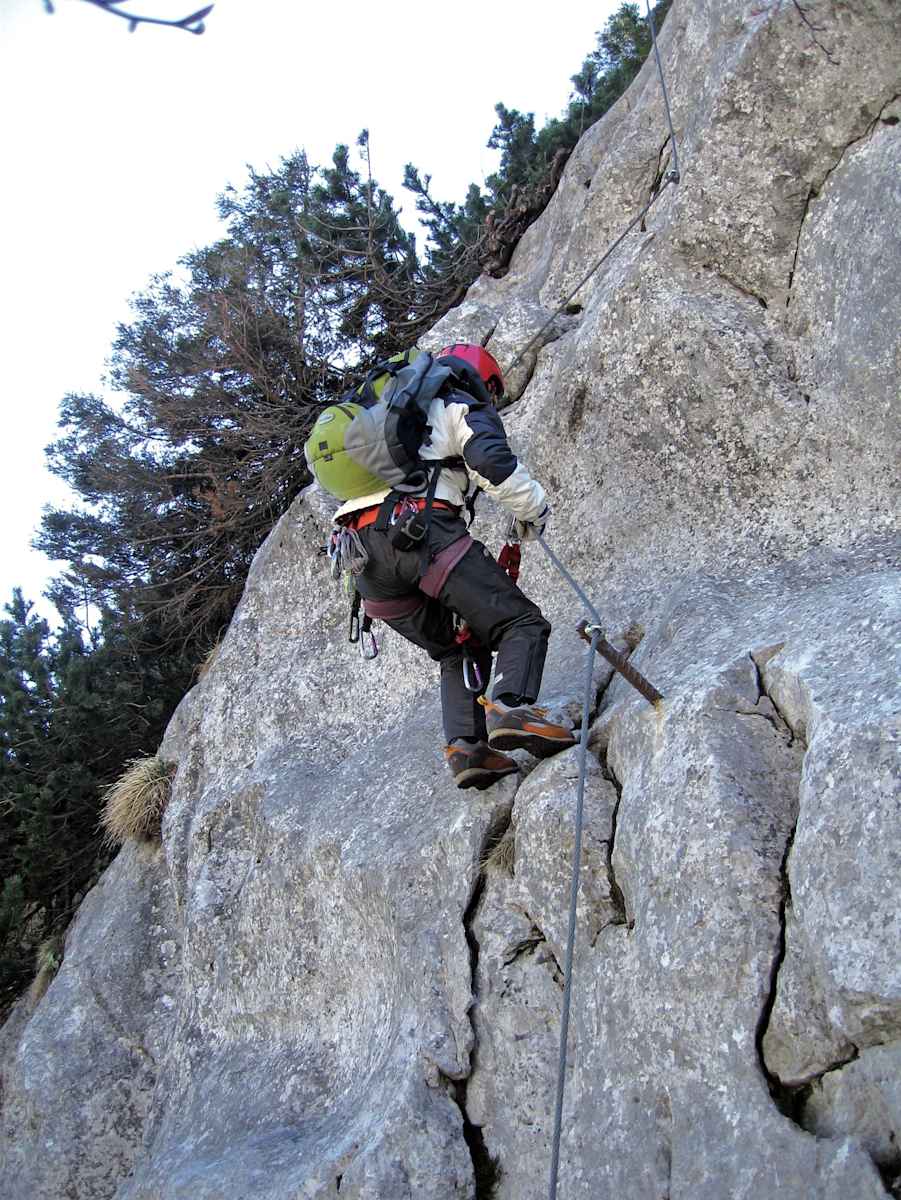 Ausrüstung: Klettersteigset, Helm, mittelfeste Bergschuhe od. Kletterschuhe