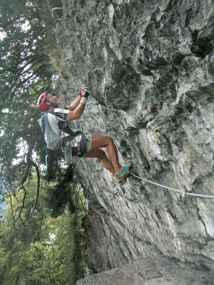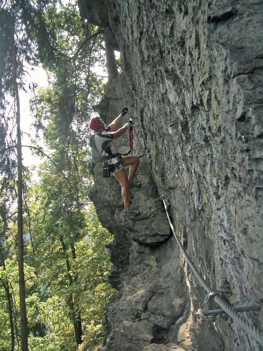 - Ausrüstung: Klettersteigset, Helm, mittelfeste Bergschuhe od. Kletterschuhe