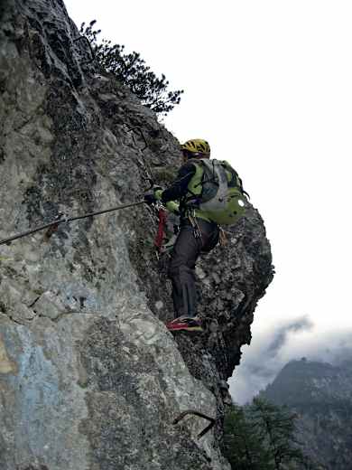 Ausrüstung: Klettersteigset, Helm, mittelfeste Bergschuhe od. Kletterschuhe