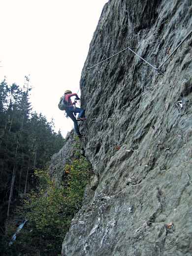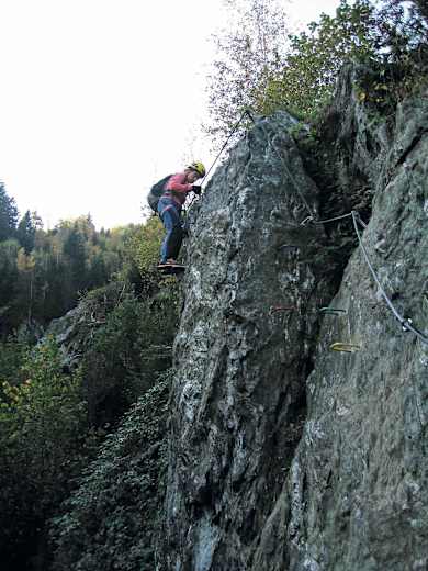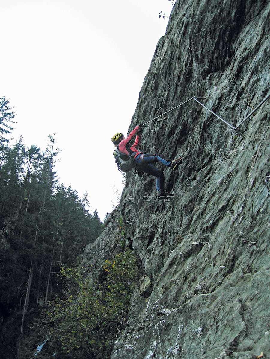 Ausrüstung: Klettersteigset, Helm, mittelfeste Bergschuhe od. Kletterschuhe