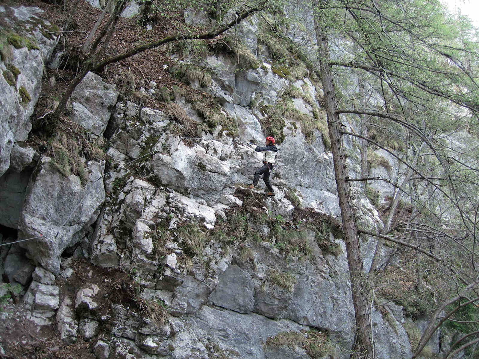 Der Klettersteig ist ziemlich inhomogen, es wechseln einige sehr steile, ausgesetzte Felsaufschwünge mit vielen Querungen im leichten (erdigen) Schrofengelände.