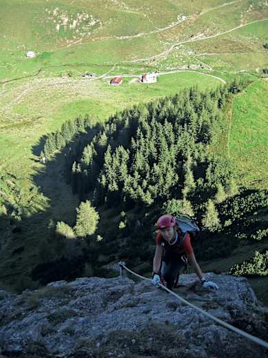 Im unteren Bereich des Marokka Klettersteiges Foto: Kurt Schall, www.schall-verlag.at