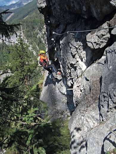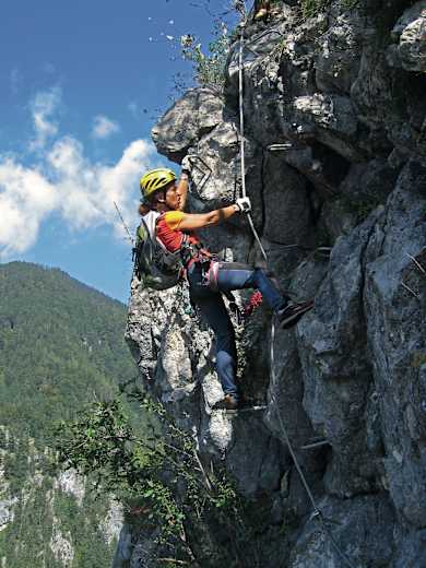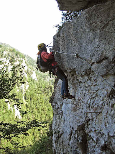 Ausrüstung: Klettersteigset, Helm, mittelfeste Bergschuhe