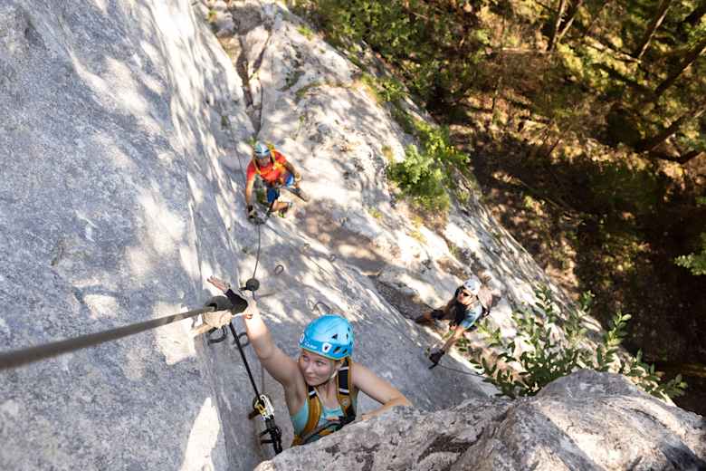 Ausrüstung: Klettersteigset, Helm, mittelfeste Bergschuhe (für den „Pfeilereinstieg“ Kletterschuhe sehr empfehlenswert!)