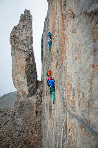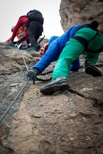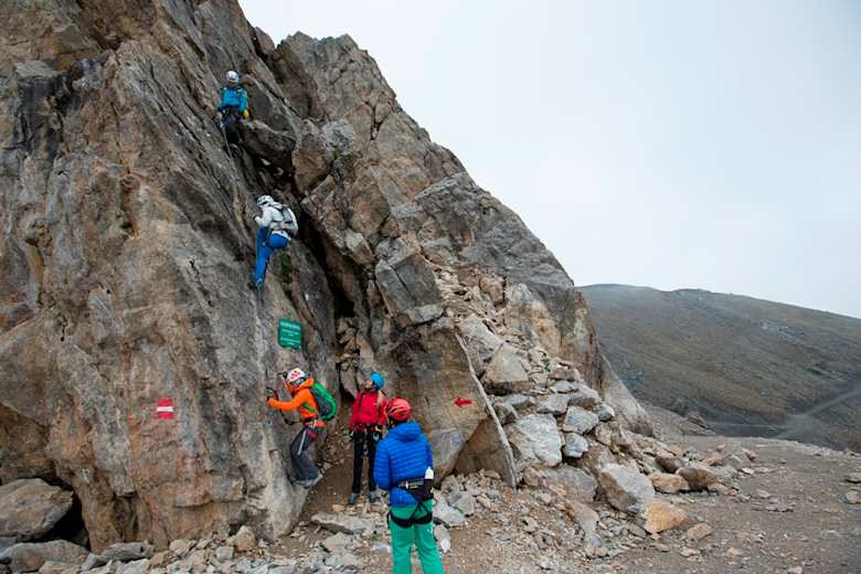 Wer nach der Besteigung noch Kraft hat, kann im Anschluss gleich weiter zum benachbarten Flimspitz-Klettersteig.
