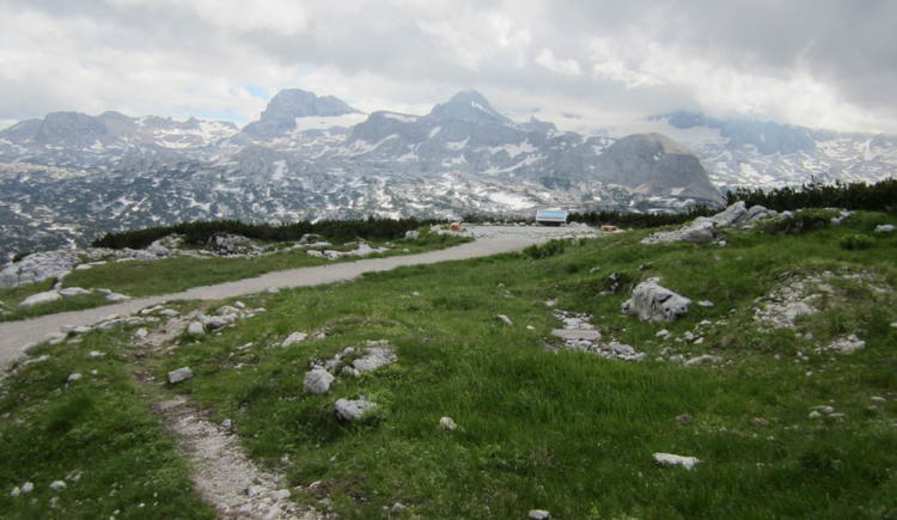 Beim Abstieg gehst du zurück zur Weggabelung Nr. 664/662 und folgst dem teilweise steilen Steig durch Karst, Felsen, Wurzeln, Wald hinab zur Schönbergalm. Von dort kannst du die letzte Teilstrecke mit der Dachstein Krippenstein Seilbahn hinunterfahren.
