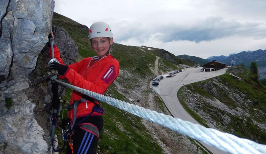 Der Beginner-Klettersteig “Sophie“ auf der Diml Wand am Loser ist eine tolle Ergänzung zum anspruchsvollen „Sisi“-Klettersteig. Der Einstieg ist schnell von der Mautstraße erreicht, so dass dem Klettersteigabenteuer nichts im Wege steht.