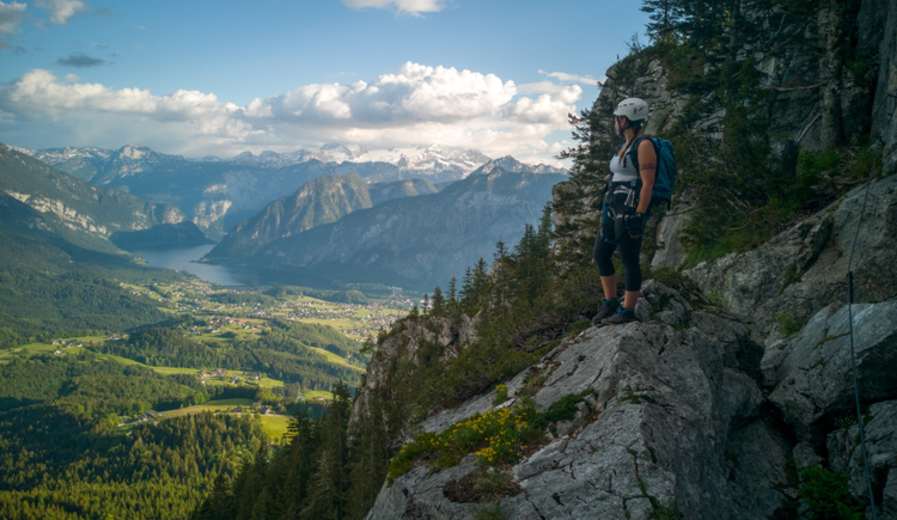 Tolle Aufnahme von der Aussicht vom Leadership Klettersteig mit dem Hallstättersee und der umliegenden Bergwelt im Hintergrund. Foto: Mathias Stieger Bildergalerie (2)