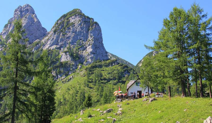 Von der Hütte geht es weiter zum Klettersteig und den beiden Gipfeln.