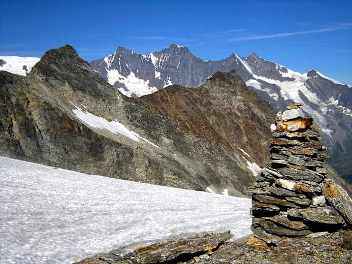 Vom Sonnigpass führt die Markierung durch alpines Gelände zur Almagellerhütte. Nach einer Rast erfolgt der Abstieg über den Hüttenweg nach Saas-Almagell.