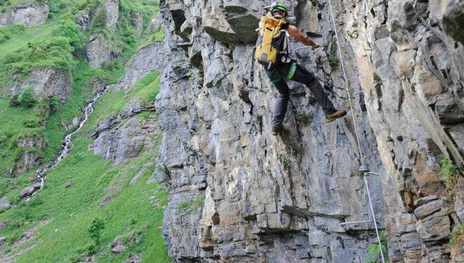 Ausgerüstet mit Klettersteig-Set und Helm (können auch beim Dorfladen gemietet werden) geht es hoch zum Zingelstöckli. Der Klettersteig ist anspruchsvoll und nicht für Anfänger geeignet.