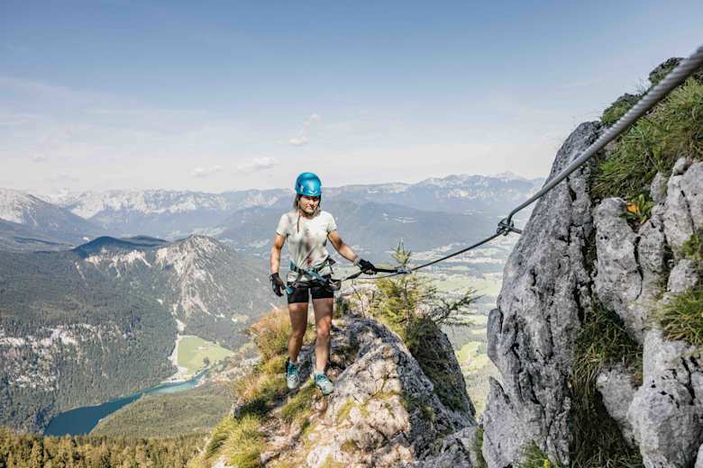 Laxersteig- und Schützensteig am Jenner Foto: Markus Rohrbacher, Red Bull Media House Publishing Luftige Querung im Laxersteig am Jenner Foto: Markus Rohrbacher, Red Bull Media House Publishing Viel Luft unter den Sohlen im Laxersteig am Jenner Foto: Markus Rohrbacher, Red Bull Media House Publishing Tiefblick auf den Königssee vom Schützensteig am Jenner Foto: Markus Rohrbacher, Red Bull Media House Publishing Bildergalerie (4)