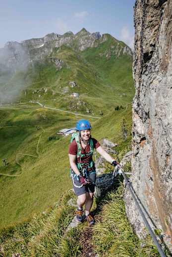 Der Tauernblick Klettersteig ist zwar kurz, weist aber einzelne durchaus knackige Passagen auf. Darum sollte man schon etwas Klettersteigerfahrung mitbringen. Bei Nässe sind die grasigen Passagen unangenehm. Notausstieg gibt es zwischendurch keinen.