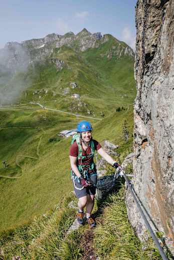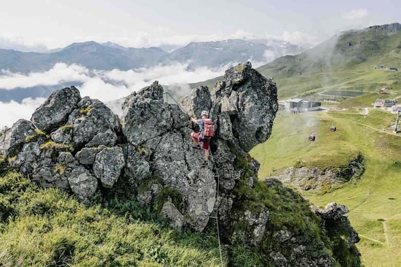 Tauernblick-Klettersteig - Gehpassagen auf Gras verbinden die Klettersteigelemente Foto: Markus Rohrbacher, Bergwelten-Magazin