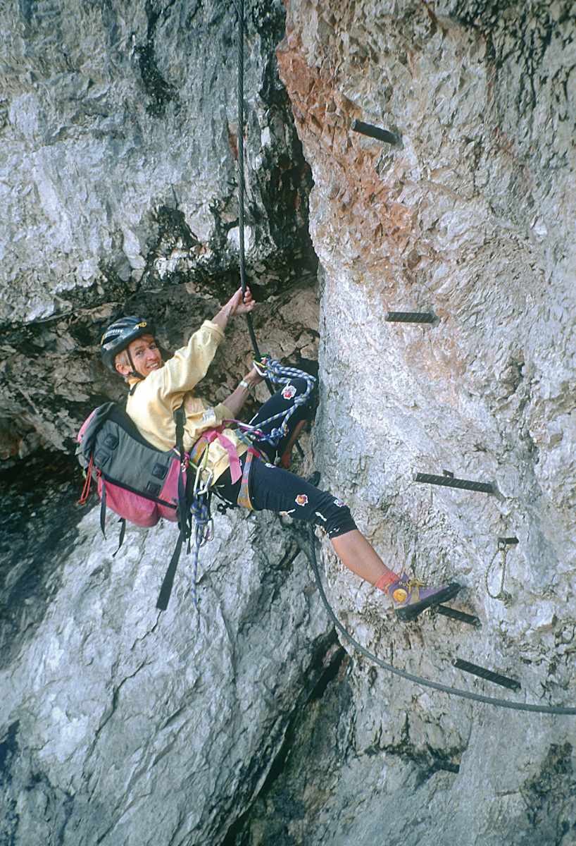 Bis zu 700 m Stahlseil sowie etwa 250 Trittstifte wurden verarbeitet - das Ergebnis wird jeden Klettersteigfreak zufrieden stellen. Gleich zu Beginn entscheidet es sich, ob man dem „Johann" gewachsen ist. Diese extrem schwierige Schlüsselstelle (Überhang) hat schon etliche Aspiranten abgewiesen.
