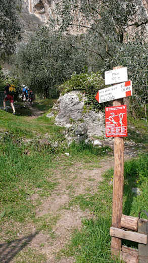 Gegenüber dem Freibad neben dem Camping Arco beginnt ein Fitness-Pfad dem man einfach durch Olivenbäume und Felsblöcken hinauf folgt. Nach wenigen Minuten erreicht man den Einstieg des Klettersteiges.