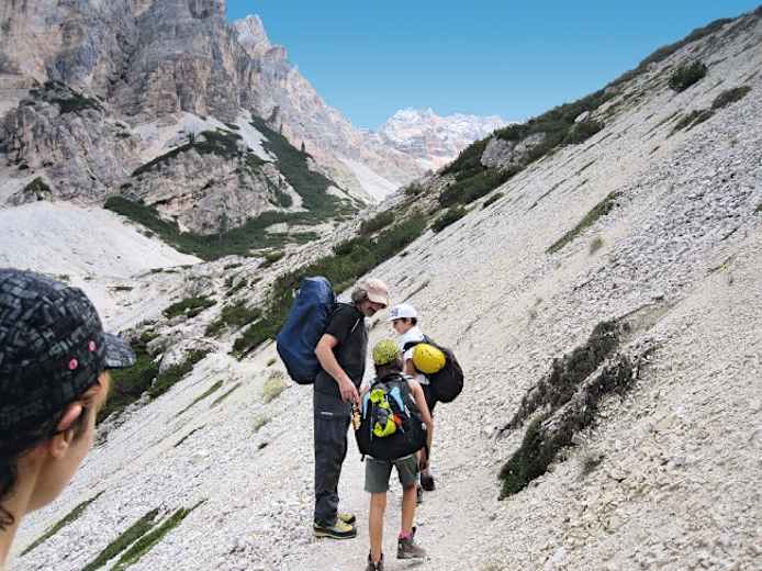 Von Bruneck durch das Gadertal oder übers Grödner Joch nach St. Kassian und weiter über den Valparolapass zum Falzaregopass; man fährt noch ein kurzes Stück Richtung Cortina, bis es nach ca. 1 km linker Hand eine Parkmöglichkeit bei der Bar „da Strobel“ (2.035 m) gibt.