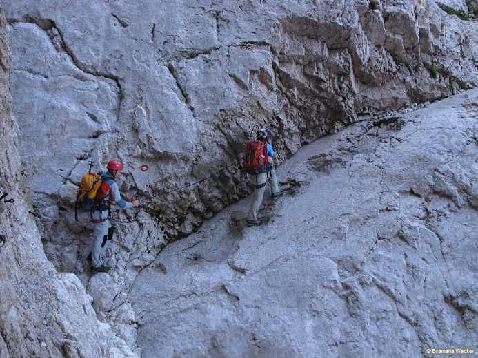 Im unteren Teil des slowenischen Klettersteigs. Foto: Evamaria Wecker, Rother Bergverlag