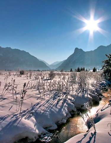 Diese einfache Langlaufstrecke in der deutschen Mieminger Kette und dem Wettersteingebirge führt über flache Wiesen und glänzt durch ein beeindruckendes Bergpanorama. Die Tour startet vom Ortsrand in Garmisch-Partenkirchen und führt über flache Wiesen nach Hammersbach in Bayern.