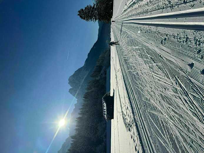 Die Loipe ist im klassischen und skating Stil zu befahren. Sie wird täglich gespurt und steht Langläufern kostenlos zur Verfügung. Die ca. acht Kilometer lange Route wird aufgrund der traumhaften Aussicht zu einem tollen Erlebnis in der Natur.