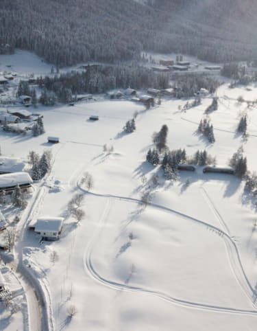 Die Langlaufstrecke befindet sich auf der angrenzenden Wiese.