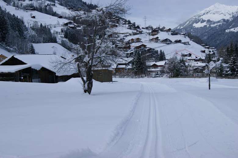 Der Rundkurs beginnt beim Feuerwehrhaus in Gaschurn und führt auf knapp 4 km durch die malerische, tief verschneite Landschaft.
