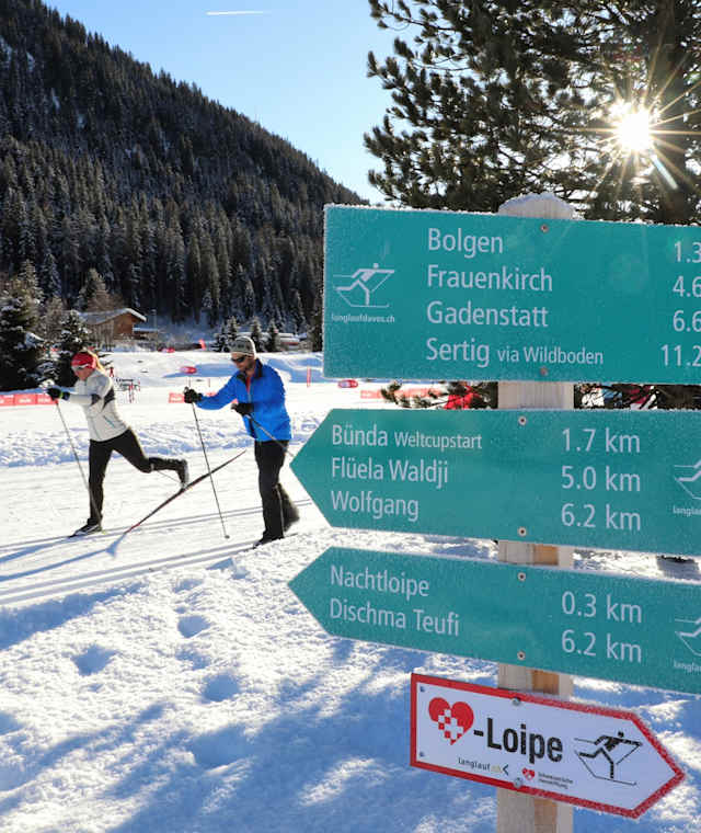 Der mittelschwere, klassische Kurs führt über perfekt gespurte Loipen durch herrliche Winterlandschaft mit großartigen Ausblicken auf die umliegende Bergwelt.