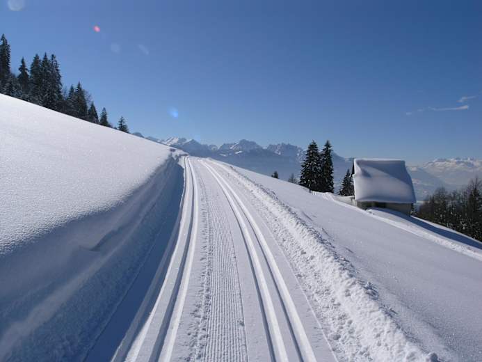 Ein Geheimtipp im Großen Walsertal in Vorarlberg: Die Romantikloipe Raggal in der Alpenregion Bludenz führt aussichtsreich und teilweise im Rundkurs von Raggal nach Ludescherberg. Die Loipe bietet sowohl die Möglichkeit für klassisches Langlaufen als auch für Skating und ist für Anfänger und fortgeschrittene Langläufer geeignet.