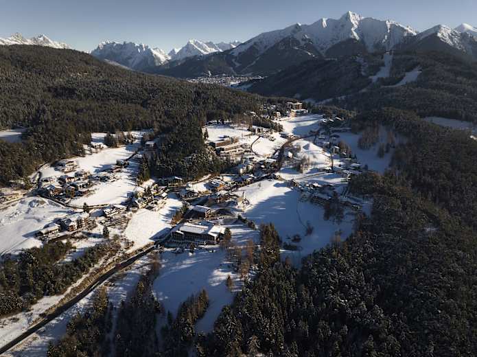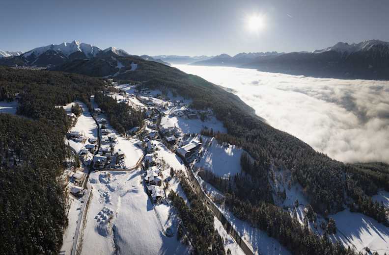 In Mösern bis zum Informationsbüro Mösern fahren und dort beim Parkplatz P2 parken.