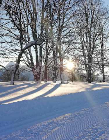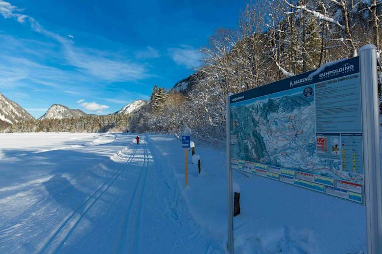 Die Drei-Seen-Loipe ist unbestritten die schönste und schneesicherste Loipe bei Ruhpolding im bayerischen Chiemgau. Sie führt hinein nach „Klein-Kanada“ mit seinem glitzernden Schnee, tief verschneiten Wälder und zugefrorenen Seen.