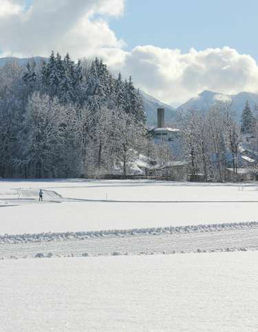 Diese Langlauftour verläuft entlang der Tiroler Ache bei Schleching im bayrischen Chiemgau. Sie enthält keine Steigungen und eignet sich daher besonders gut für Anfänger. Einkehrmöglichkeiten gibt es im Ort Schleching.