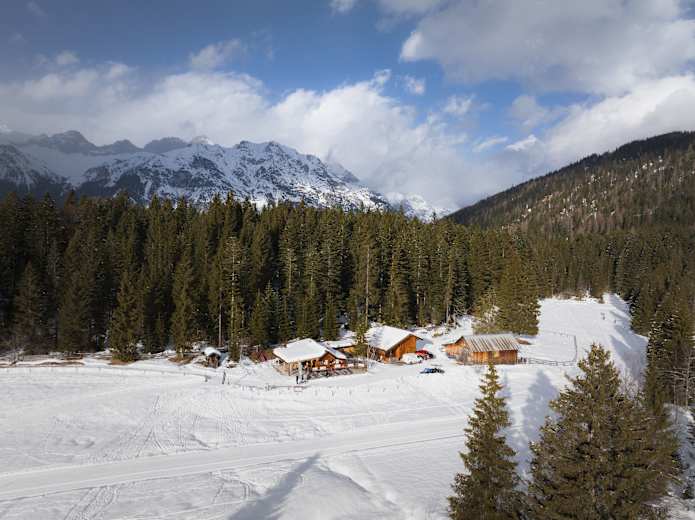 Unbedingt in der Muggenmoosalm einkehren und sich mit einem Schnapstee aufwärmen.