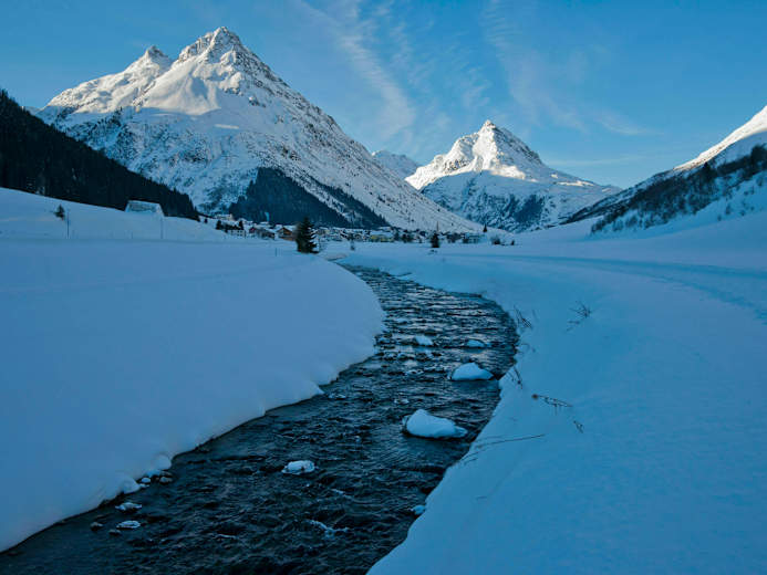 Während man durch die Winterlandschaft gleitet, hat man stets die Ballunspitze, den Hausberg von Galtür, im Blick. Der höchste Punkt liegt auf 1.566 m.