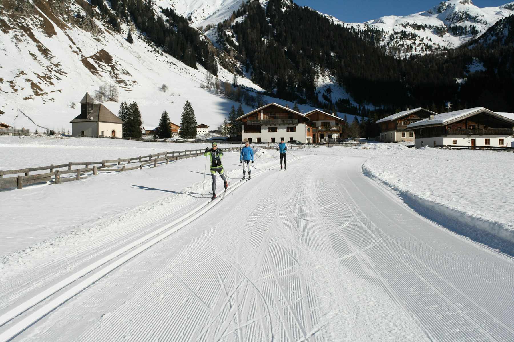Die mittelschwierige Langlaufloipe Pensertal zwischen Weißenbach, Pens und Asten in den Sarntaler Alpen, führt an urigen Südtiroler Bergbauernhöfen und gemütlichen Gaststätten vorbei. Die Spur wird täglich für beide Laufstilarten bestens präpariert.