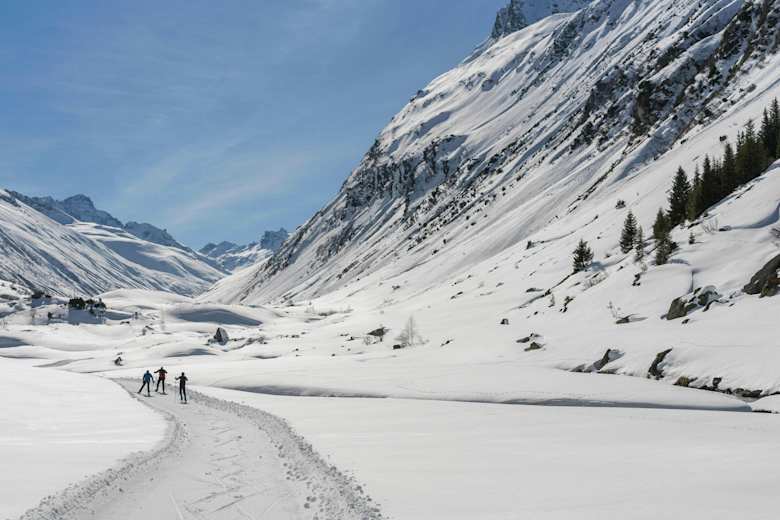 Ein großartiges Panorama und viele Höhenmeter zeichnen diese 19 km lange Hochgebirgsloipe im Montafon in Vorarlberg aus. Eine gute Kondition ist Voraussetzung, wenn man auf der sonnenverwöhnten Bielerhöhe entlanggleitet.