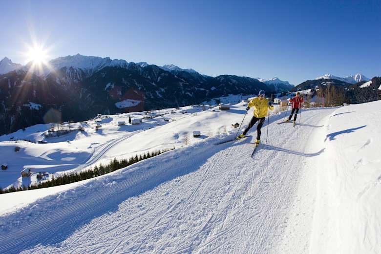 An der Mittelstation der Sonnenbahn Fiss-Ladis in 1.550 m Meereshöhe beginnt die Pardatschloipe. Diese technisch einfache Loipe in der Samnaungruppe in Tirol eignet sich für Einsteiger und fortgeschrittene Läufer den klassischen Langlaufstil zu perfektionieren.