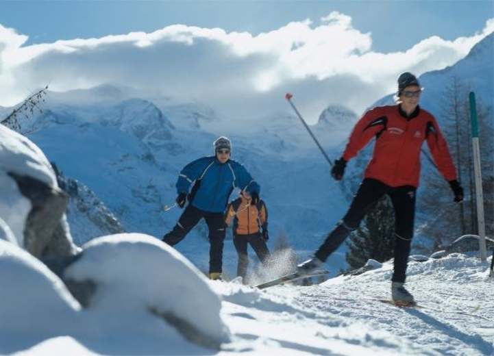Die leichte Loipe von Pontresina nach Morteratsch eignet sich zum Skaten sowie für den Klassischen Langlauf und ist auch für Anfänger zu empfehlen. Im ersten Teil steigt die Loipe leicht an bis man das Dorf Pontresina hinter sich gelassen hat. Danach gibt es keine Steigung mehr bis zum Hotel Restaurant Morteratsch. Hier lohnt sich ein Abstecher auf die sonnige Terrasse des Restaurants, um das herrliche Bergpanorama der Berninagruppe in Graubünden ausgiebig zu geniessen.