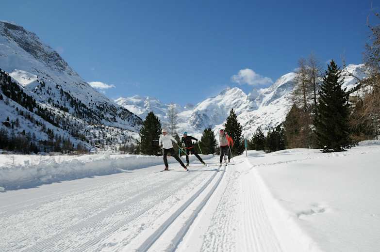 Vom Langlaufzentrum in Pontresina geht es in sanften aber kontinuierlichen Anstieg über Surovas , Resgia und Alp Veglia nach Morteratsch. Zurück geht es auf dem gleichen Weg.