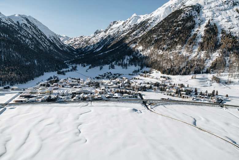 Auf der Route 27 von St. Moritz oder Zernez kommend nach Bever.