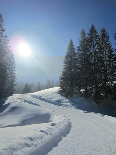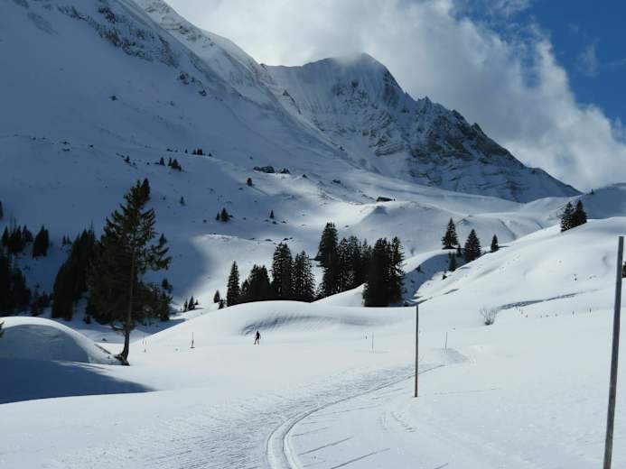 Wer lieber wandert, dem sei der Winterwanderweg parallel zur Verbindungsloipe Rossweid - Salwideli empfohlen.