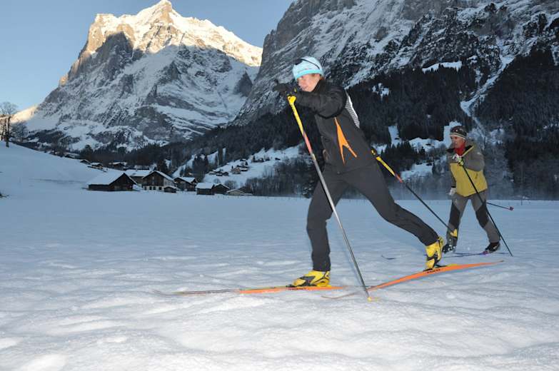 "Den Eiger im Nacken und das Wetterhorn vor Augen". - Eine Kulisse, die motiviert. Die flache Loipe im lieblichen Tal der Lütschine eignet sich perfekt für Einsteiger und Genießer. Auf der 8 km langen Skating Strecke bzw. der 7 km langen Klassischen Loipe können Bewegungsabläufe ganz in Ruhe erlernt und verinnerlicht werden.