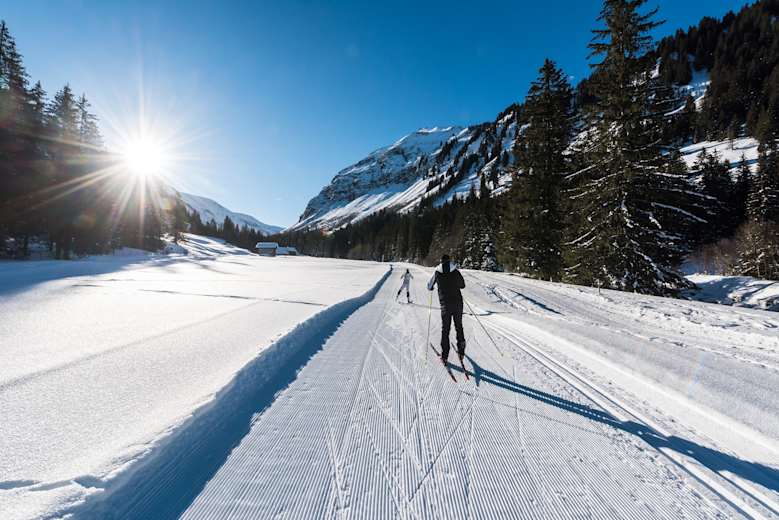 Die sonnige Ebene zwischen Wistätthorn, Tube und Giferspitz ist wie gemacht für eine gemütliche Langlaufrunde in traumhafter Winterlandschaft. Die Loipe startet im Dorf und führt zur Wintermatte und wieder retour.