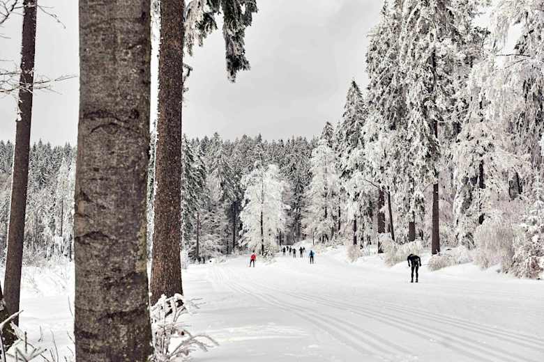 Die orange markierte Loipe ab dem Aktivzentrum Bodenmais im Bayerischen Wald besticht durch ihren abwechslungsreichen Charakter, schöne Aussichten und anspruchsvolles Terrain. Sie ist sowohl klassisch als auch im Skation-Stil gespurt.