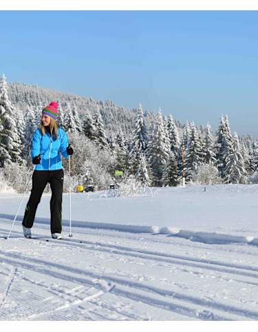 Die Große Haagerloipe im Böhmerwald in Oberösterreich ist leicht und mit rund 4 km nicht allzu lang. Sie ist auch für Kinder gut geeignet und auf dieser Loipe dürfen sogar Hunde an der Leine mitgeführt werden.