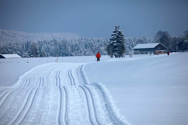 Die Winterlandschaft rund um Bad Tölz in Bayern eignet sich für das Langlaufen besonders gut. Die klassisch gespurte Loipe führt durch das Ellbach-Kirchseemoor zum Kloster Reutberg - eine landschaftlich besonders reizvolle Route.