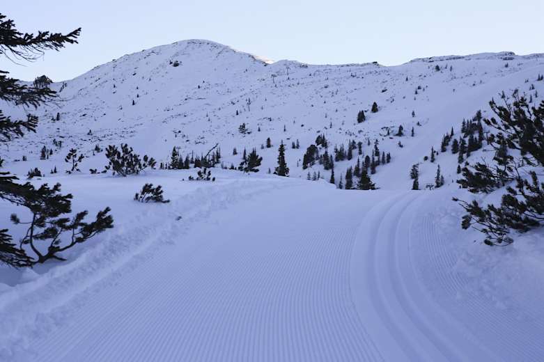 Die Höhenloipe auf der Planneralm in der Region Schladming Dachstein in der Steiermark ist eine anspruchsvolle Loipe, die sowohl klassisch als auch im Skating-Stil gespurt wird. In der wunderschönen Landschaft macht die körperliche Anstrengung aber richtig Spaß.