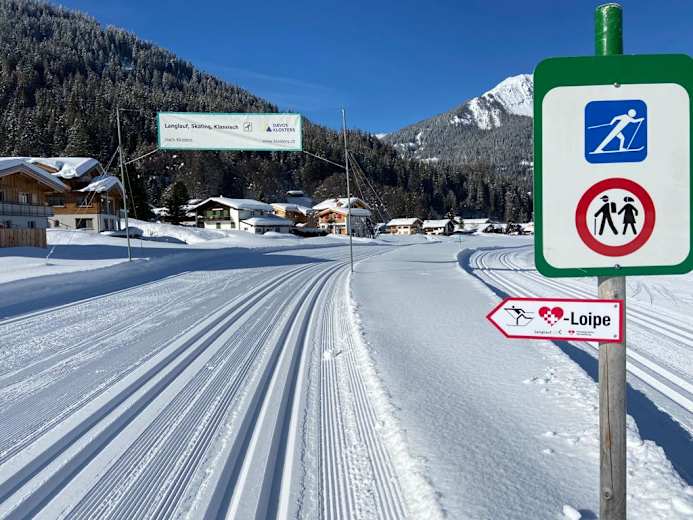 Die leichte Herzloipe in Klosters ist eine gemütliche Tour für Einsteiger und Genießer. Der Rundkurs kann klassisch oder im Skatingstil gelaufen werden. Idealerweise erreicht man Klosters mit öffentlichen Verkehrsmitteln.